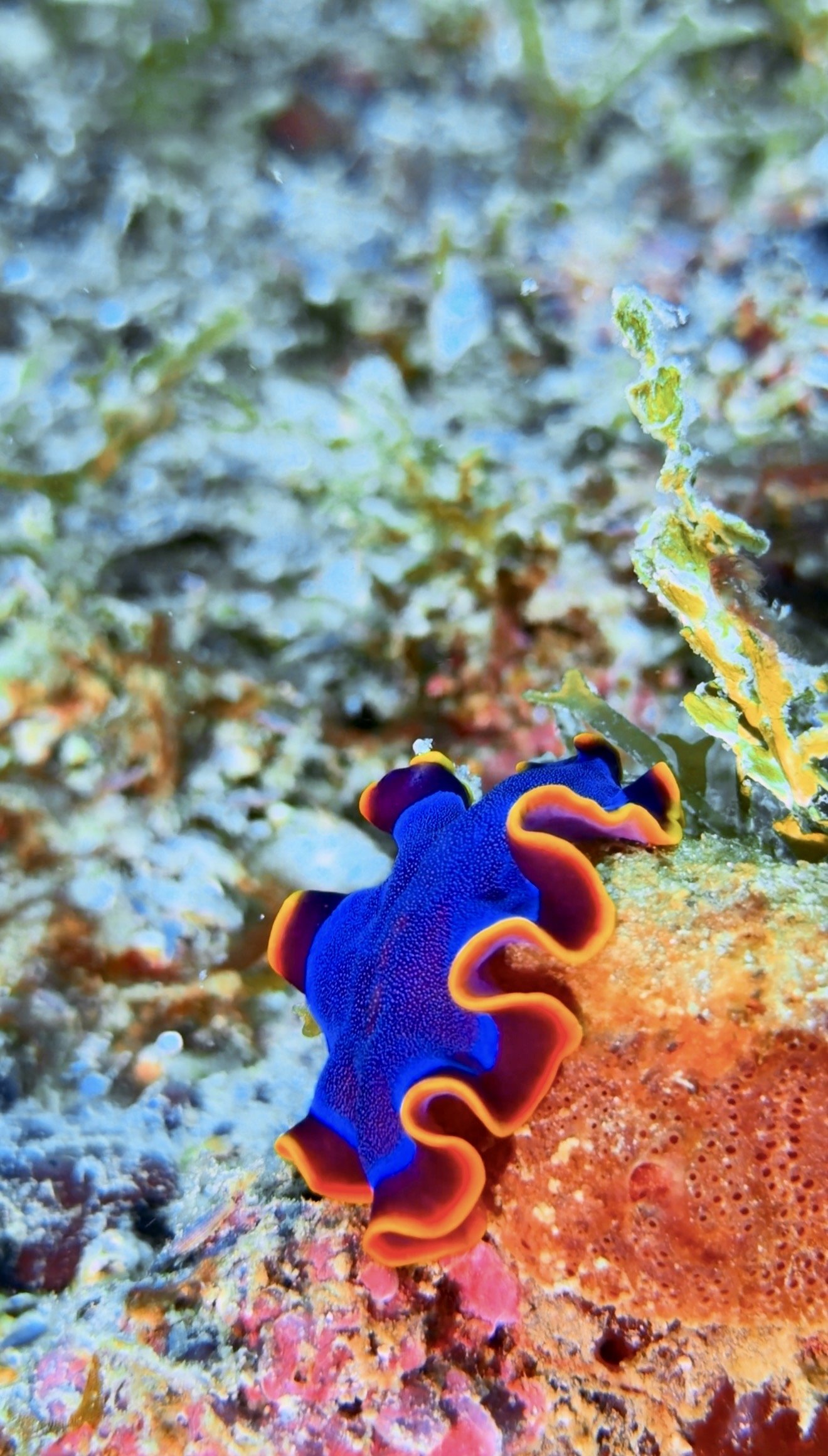 Jennifer & I did see quite a few nuidbranches here, though that ended up not being the central draw of what would probably end up being one of the best dives of the entire trip. As soon as we were in the water we found a rocky outcropping covered in Maxima Clams. Their electric blues & greens were outstanding against the rocks they were embedded in. Just over the edge we found a Orbiculate Batfish, followed by several Moray Eels (one of which was massive), a handful of Sexy Shrimp, even more turtles, Blue-Spotted Stingrays, schools of Anthias, a couple of Comb Jellyfish, a Lobster, & a rather large Day Octopus. We both agreed upon surfacing to tell no one about how amazing the dive was, then immediately spilled as soon as we got back to the dock to anyone who would listen.