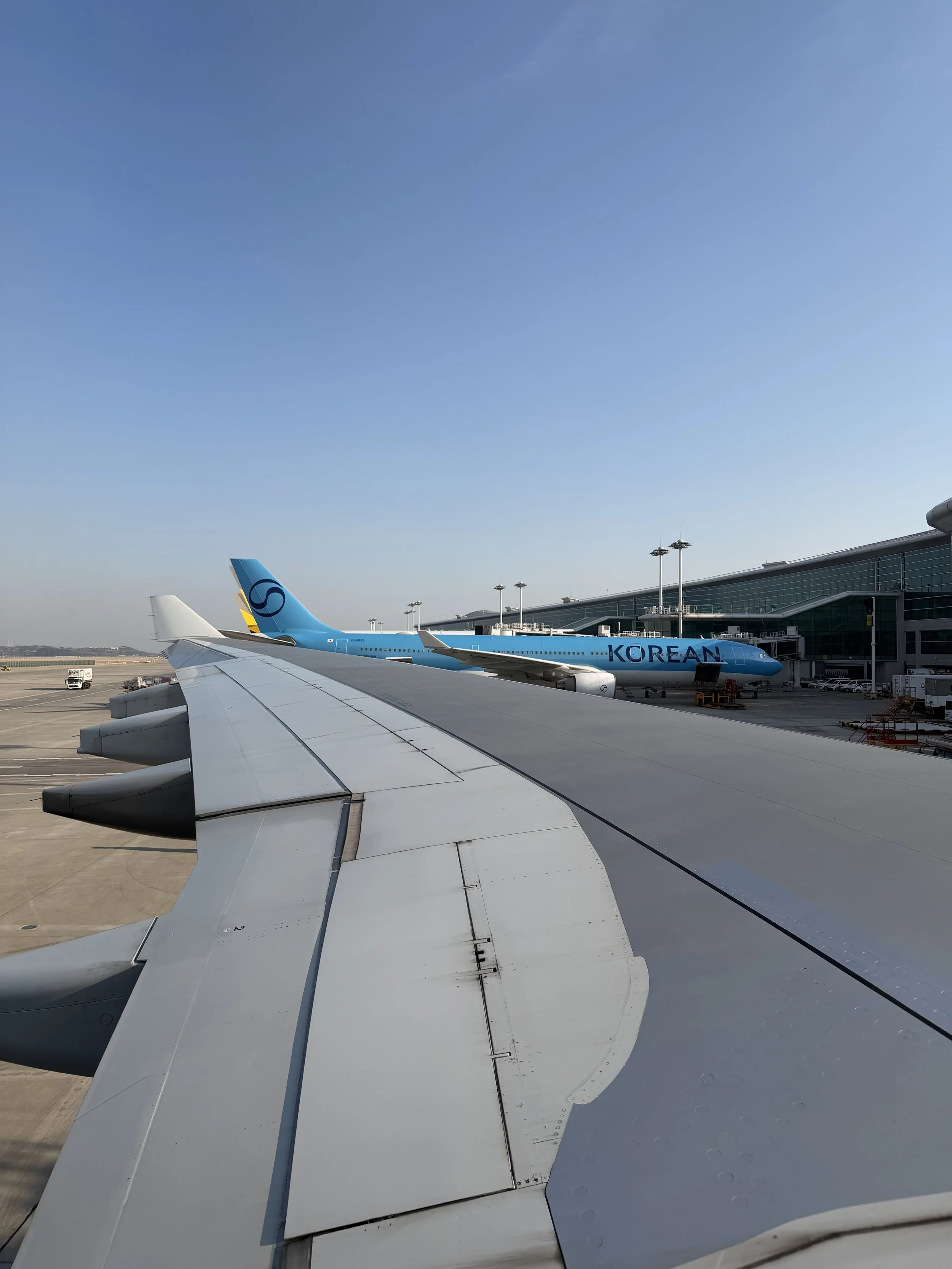 We both opted for the Korean meals on the flight & ended up sleeping around half of the total time in the air. I was amazed as a 6’4” person that I could fit majority of me in the lay flat cabin! The only issue we ran into ended up being because of the lack of windows. The only upgrades available at our time of change were the middle cabins. Typically we fly on either side of the plane with a window view. Without said window view I became very motion sick on our decent into South Korea, to the point where I was locating the barf bags. Note to self for future upgrades I guess.