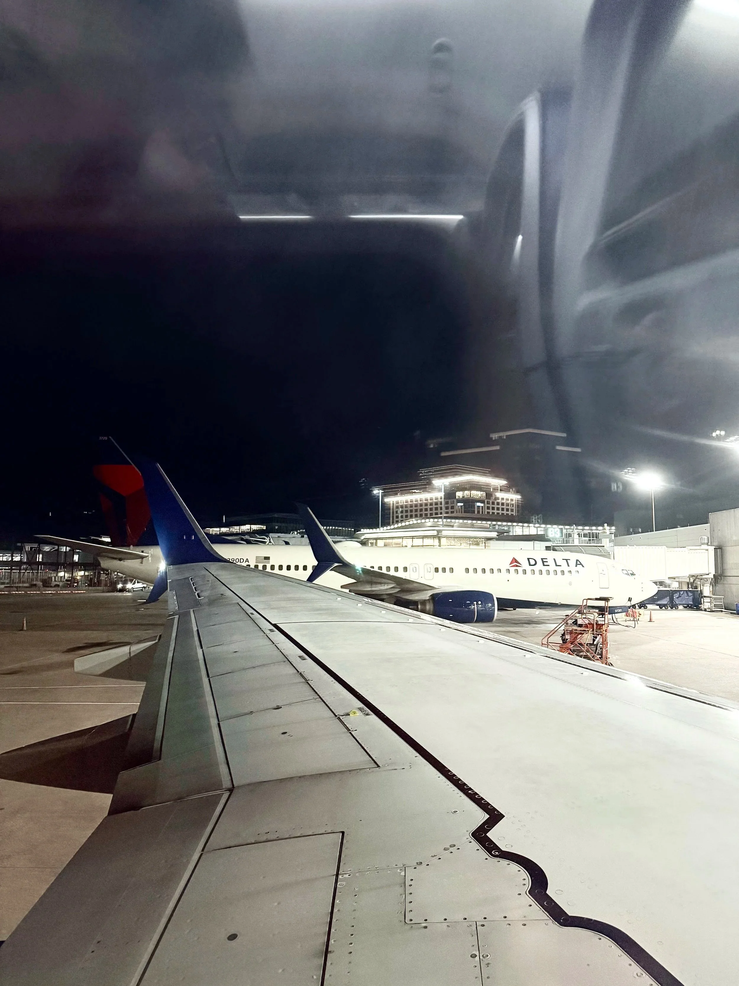 Our flight over the Canadian Wilderness & the Arctic Circle to Seoul left around 11. Evan had graciously upgraded us on this fourteen hour flight to Delta One seats, something that neither of us had ever flown before. He did this for a couple of reasons. First, Evan has been recovering from a lower back injury for the last couple of months & still has a very hard time sitting for long periods of time. This allowed us to have a lay flat bed during our very long flight & prevented him from being worried about spending the duration of the flight in a middle seat unable to get up & stretch as needed. Second, the tickets for the Delta One spots ended up being cheaper than if we had upgraded to Economy Comfort or Premium Economy. So, thanks to him, we ended up getting to lay down & sleep majority of the way to Seoul.